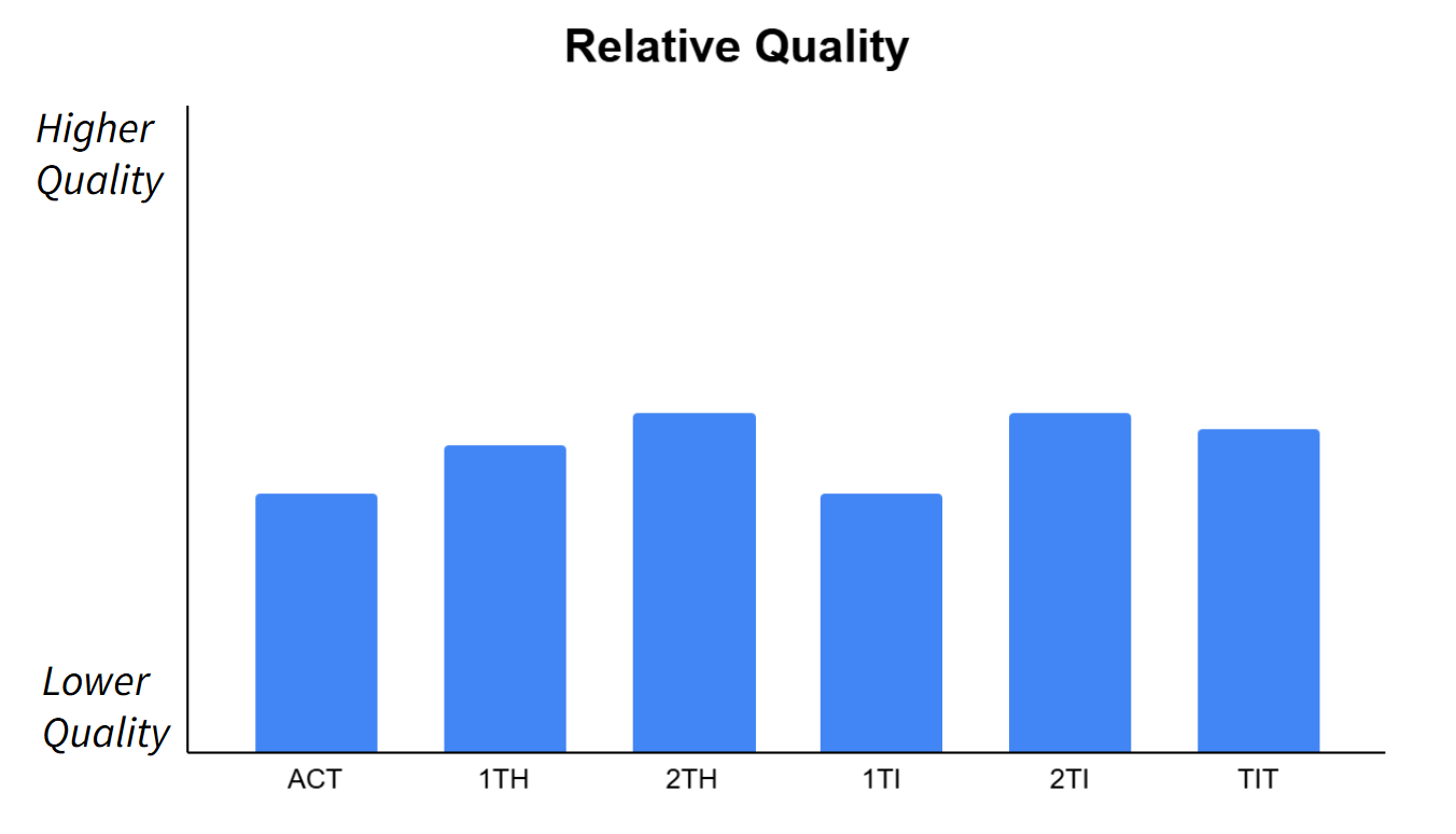 With the introduction of New Testament draft generation, Scripture Forge has developed a method of estimating the quality of the generated draft. Book-level draft quality can be used as a guide for strategic decisions regarding book sequencing. Chapter-level draft quality can be used to evaluate the need for incremental draft generation, or to anticipate the time needed for editing, improvement, and checking. It is important to understand these values as draft quality estimates, and use them for general insights and guidance, rather than as quality checking tools.